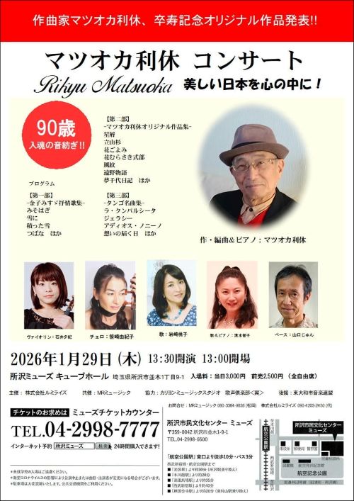 1/29(木)マツオカ利休先生のコンサートのチラシ