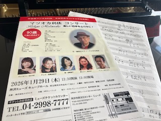 美空ひばりさんのピアニストで編曲者でいらしたマツオカ利休先生のコンサートにボーカル参加させて頂く事になり、早速チラシをお送り頂きました♪