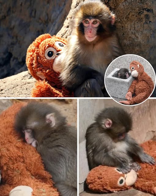 飼育員さんの愛情を受けて、ぬいぐるみのオランママと一緒に育ち、約6か月で猿山の仲間のもとに出た赤ちゃん猿のパンチくん!